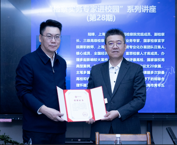 重光动态 |我所智库专家艾明教授主持最高人民检察院“检察实务专家进校园”系列讲座,并向上海市黄浦区人民检察院副检察长颁发授课证书