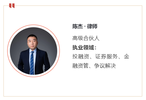 陈杰律师执业19年,熟悉金融、股权融资、资产管理,主要从事投融资、证券服务、金融资管领域法律服务。服务多家证券公司、公募基金公司、资产管理公司、保险资管公司,提供争议解决及咨询服务。曾为大量企业提供上市挂牌融资、股权融资等法律服务,曾多年参与银行贷款项目法律评审工作,并多年服务国电投、山高新能源等新能源领域电站业主、建银投资、北汽集团、动力源等大型企业、上市公司。